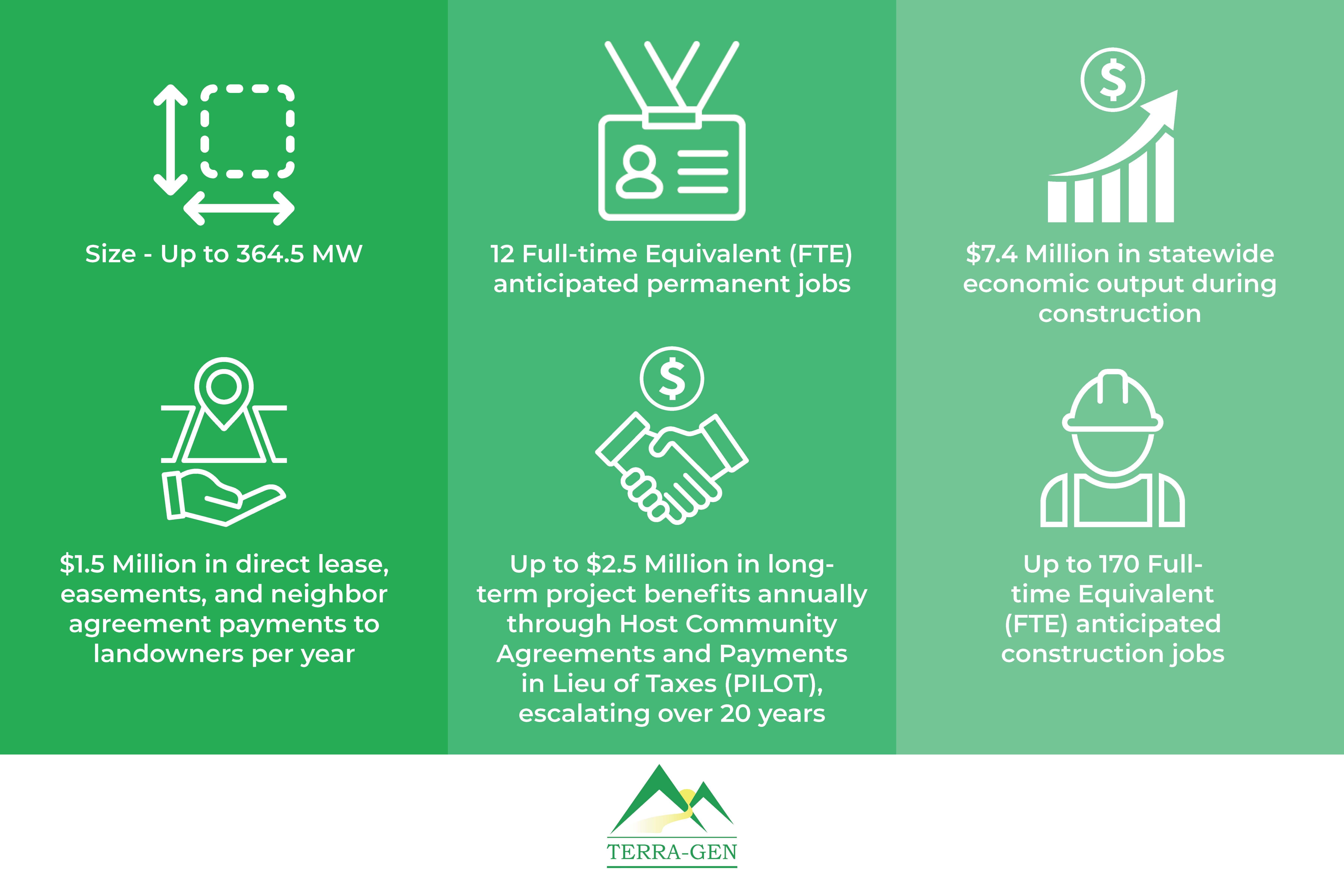 The project will bring several benefits to the community, including well-paying jobs during both construction and operation, improvements to local roads, and revenue to the community. The expected revenue includes tax payments of approximately $2.5M annually to the community, shared among the county and applicable towns and school districts, as well as more than $1.5M annually of lease payments to local landowners throughout the project area.