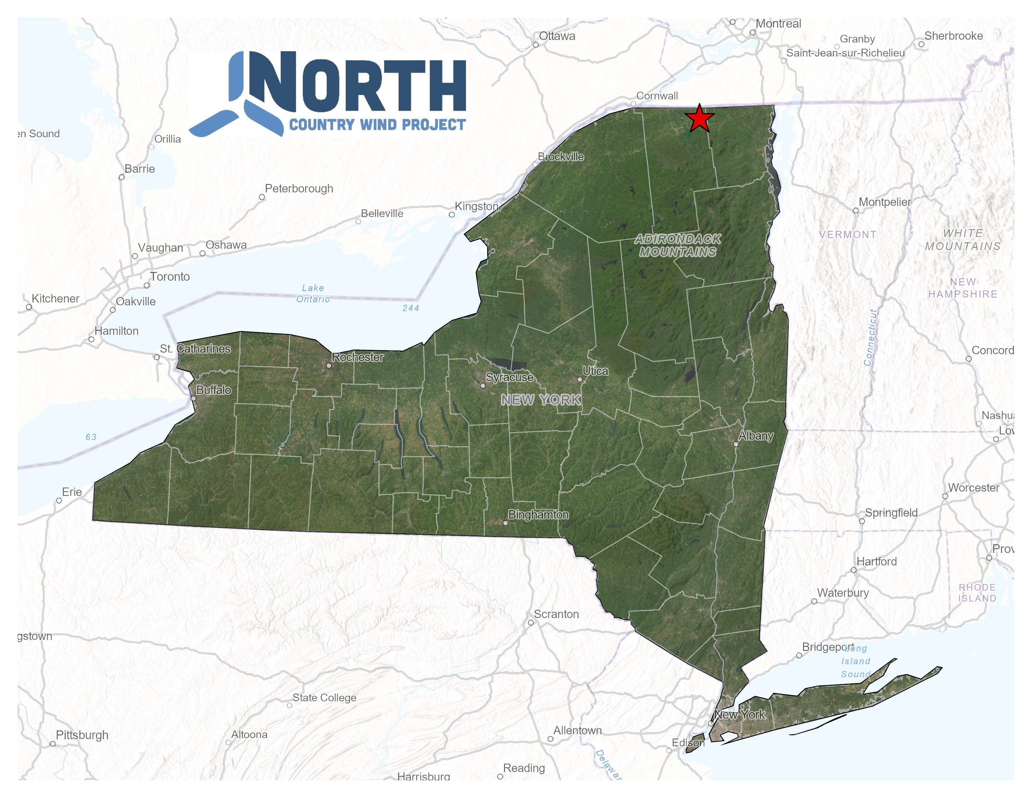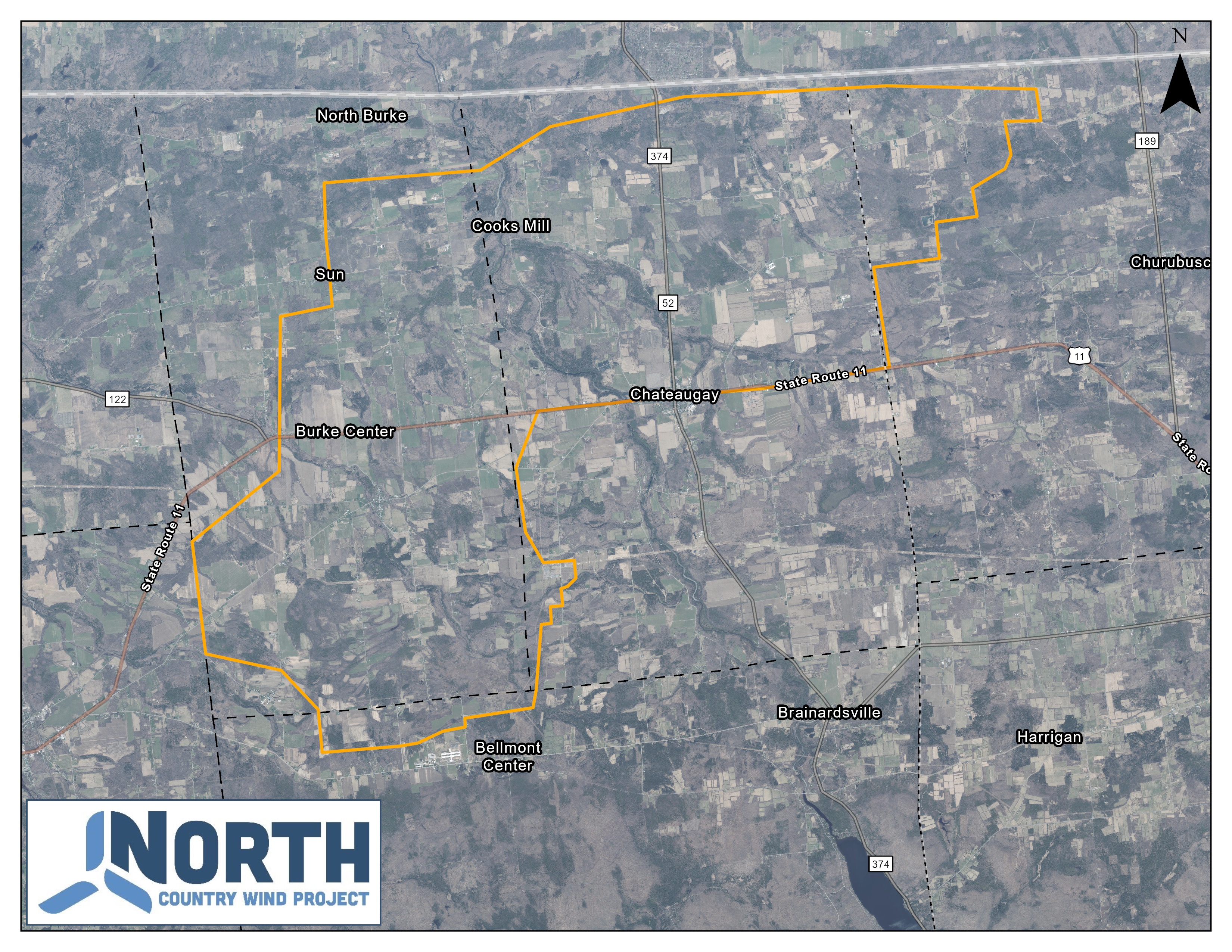 The proposed up to 365 MW North Country Wind Farm is to be located in the Towns of Bellmont, Burke, Chateaugay, and Clinton, in Franklin and Clinton Counties, NY. The project will have as many as 81 turbines and will also include collection lines, access roads, and a project substation. The project will connect to either the recently upgraded 345kV Haverstock-Willis transmission line or the existing 230kV Willis Substation.